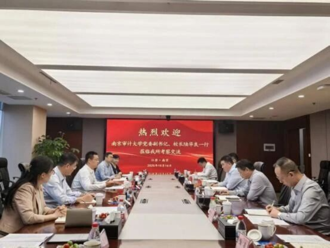 乔久华对陆华良一行表示欢迎,感谢学校长期以来的大力支持。他指出,南京审计大学办学特色鲜明,行业声誉卓著,多年来为事务所输送了228名优秀毕业生,占员工总数的21%。这些校友已成长为中坚力量,希望双方继续深化合作,培养更多优质人才。