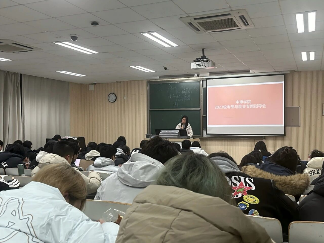 为帮助2023级同学明确发展方向、科学规划升学与就业路径,中审学院于1月5日成功举办“考研与就业专题指导会”。中审学院执行院长叶邦银教授、2023级班主任刘霞老师和全体2023级同学参加会议,并邀请2022级优秀学姐李唯一线上分享交流。刘霞老师主持会议。